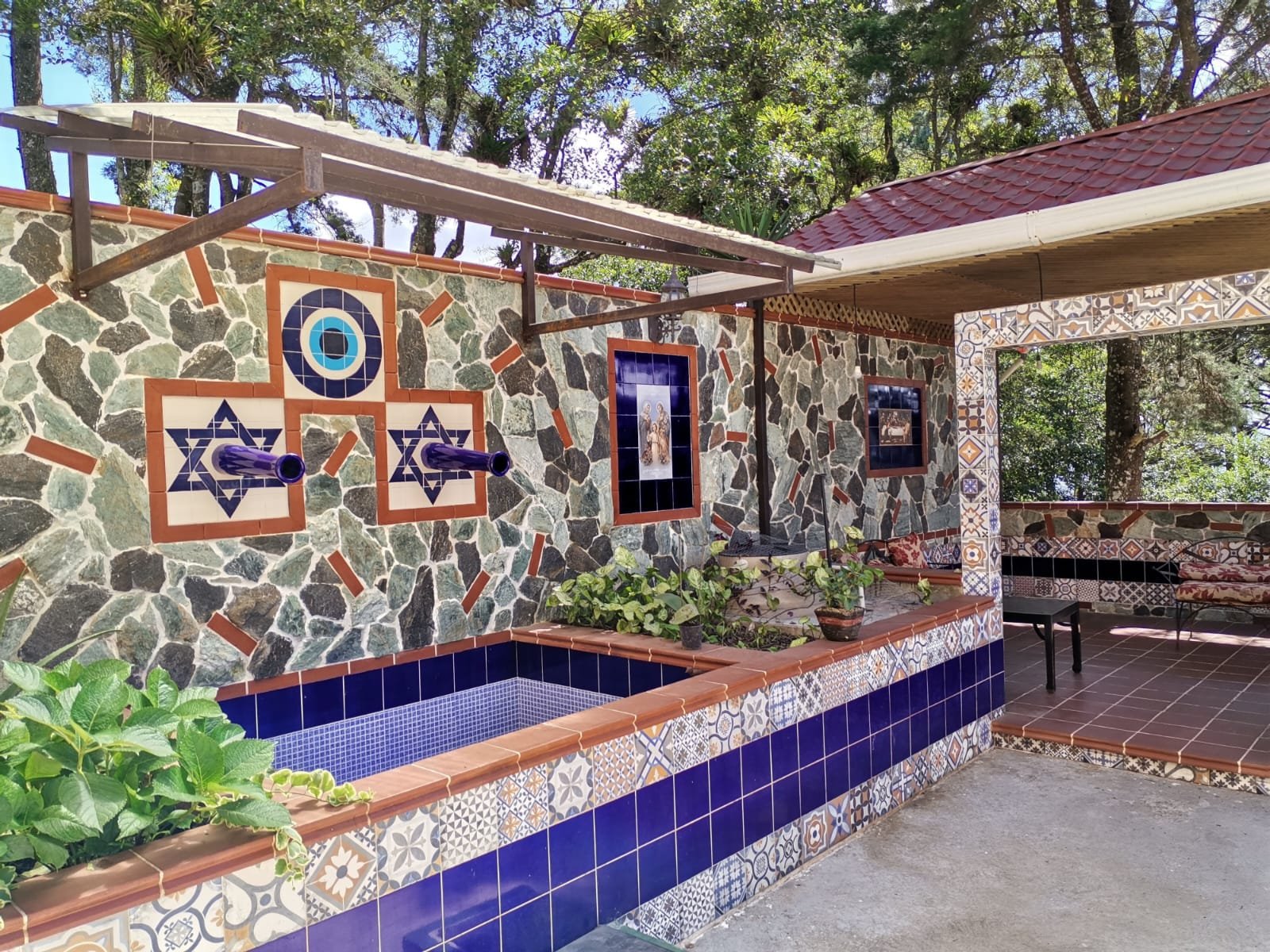 Fuente con jardineras